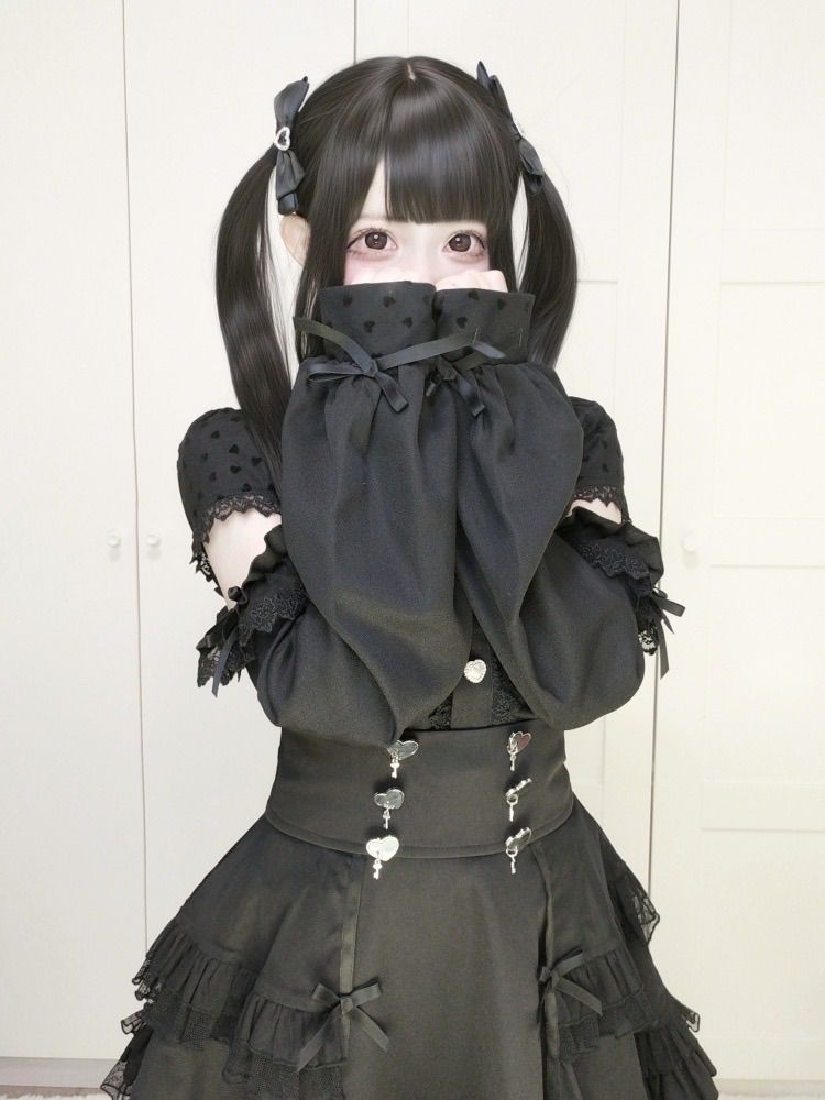 黒 ブラック 肩出し ゴスロリ 量産型 ガーリー サブカル 服 ワンピース ロリィタ 長袖 コスプレ セットアップ 地雷系 渋谷 原宿 姫 病みかわいい レース お嬢 リボン 夢かわいい 推し活 あざと BLACKFEMALETHERAPIST_ORG