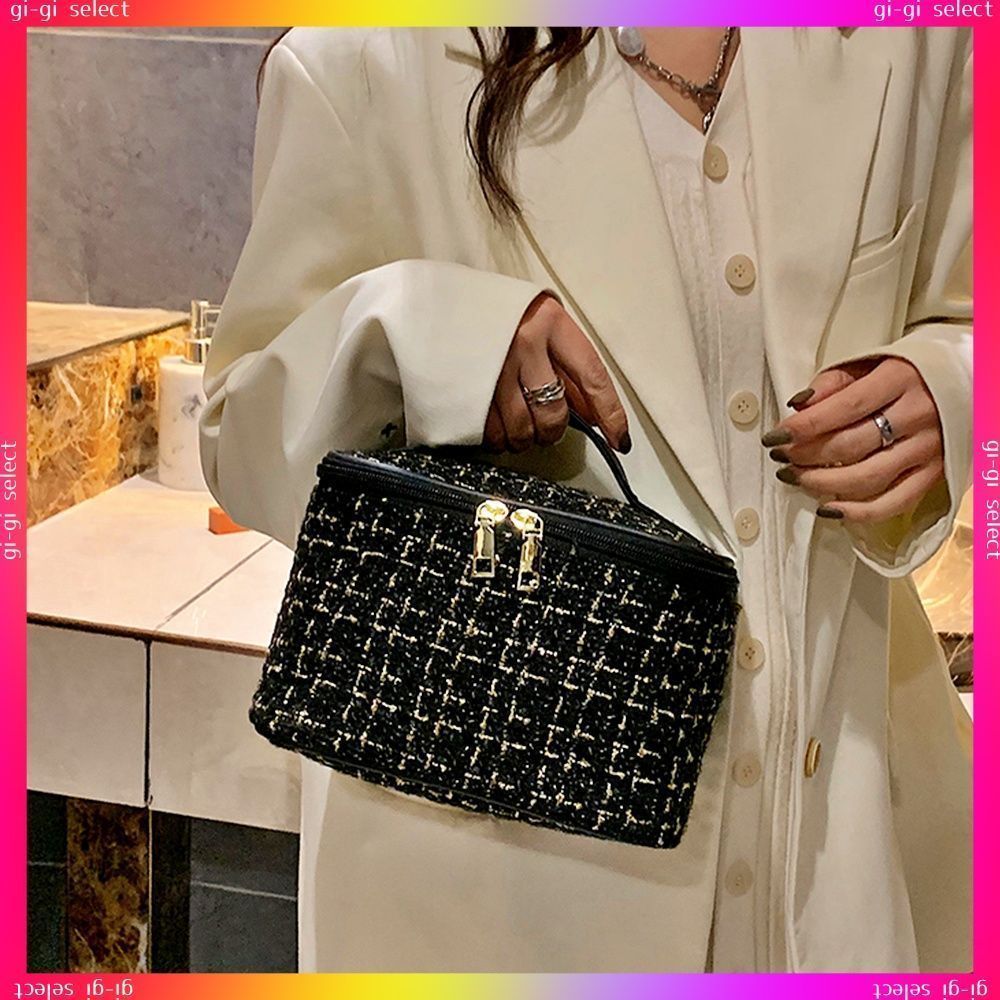 コスメポーチ大容量 使いやすい収納バッグ化粧ポーチ レディース メイクボックス 化粧品ブラシ収納ボックス コスメボックス 韓国風 プチプラ コスメ収納 トラベルツイード風小物入れ 化粧箱 持ち手付き 整理整頓グッズ軽量 BLACKFEMALETHERAPIST_ORG