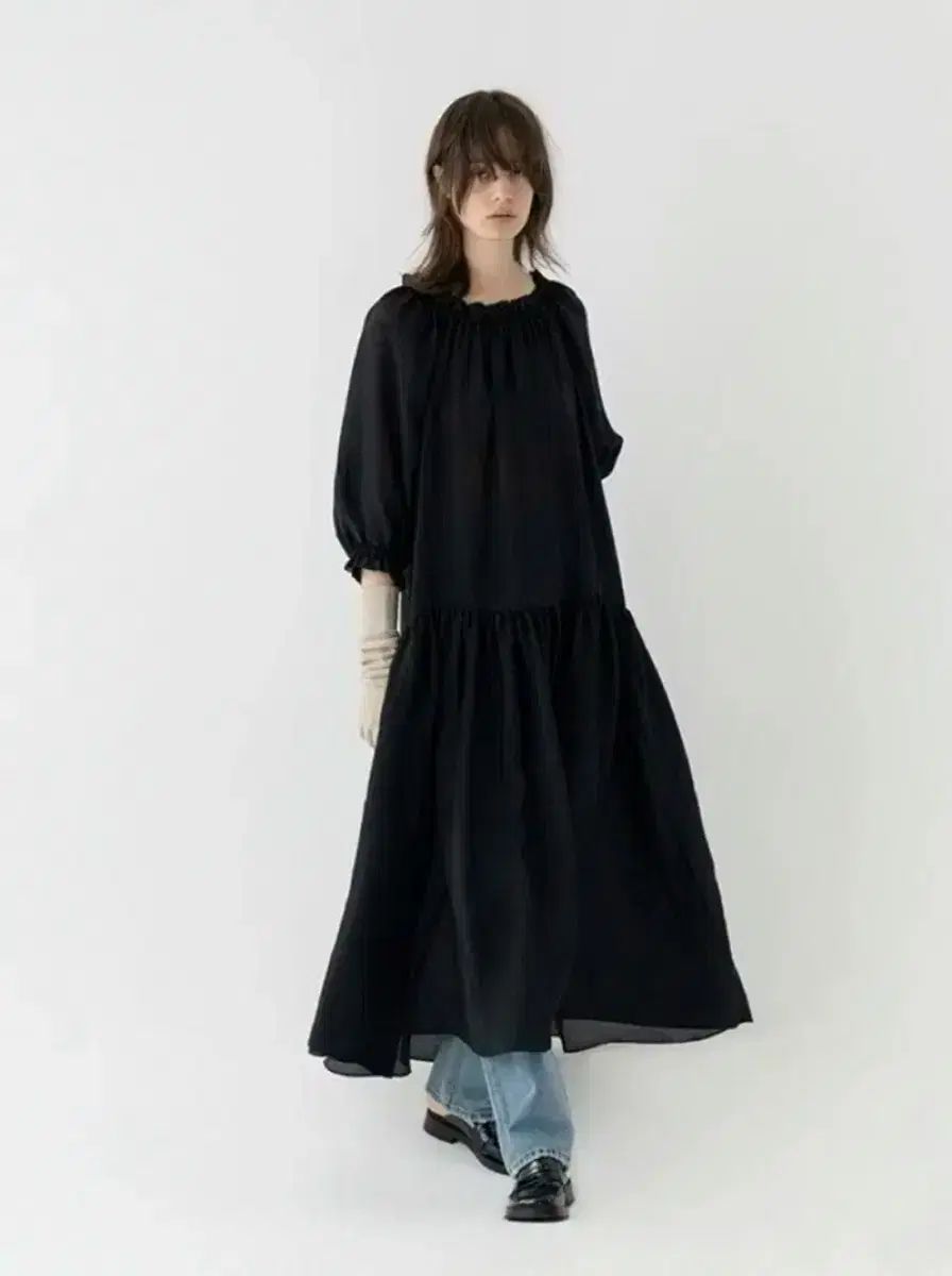 M10 アドーアワンピース ブラック お袖プリーツ 丸襟