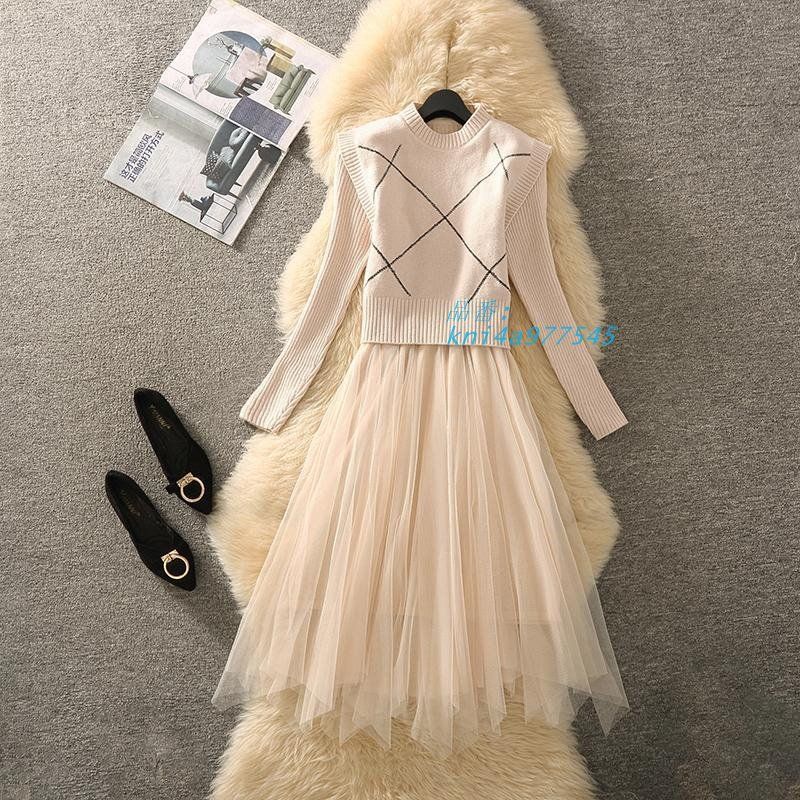 ニットワンピース チュール ベスト付き ワンピース ニット ロング Vネック ハイウエスト きれいめ かわいい 長袖 大人 冬 フェミニン 2点セット クルーネック kni4a977545の検索結果
