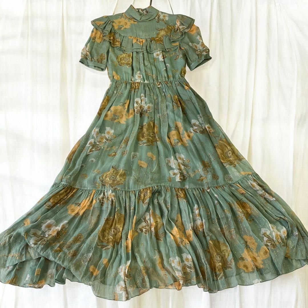 セリーヌ エディ期 フラワー フリル ワンピース ロング花柄 金糸 総柄フリルの検索結果