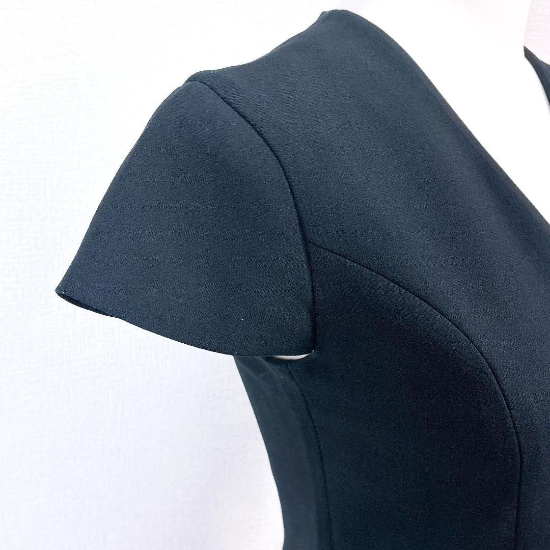 Leilian 半袖 切替ワンピース 13 ブラック ツイードチェック