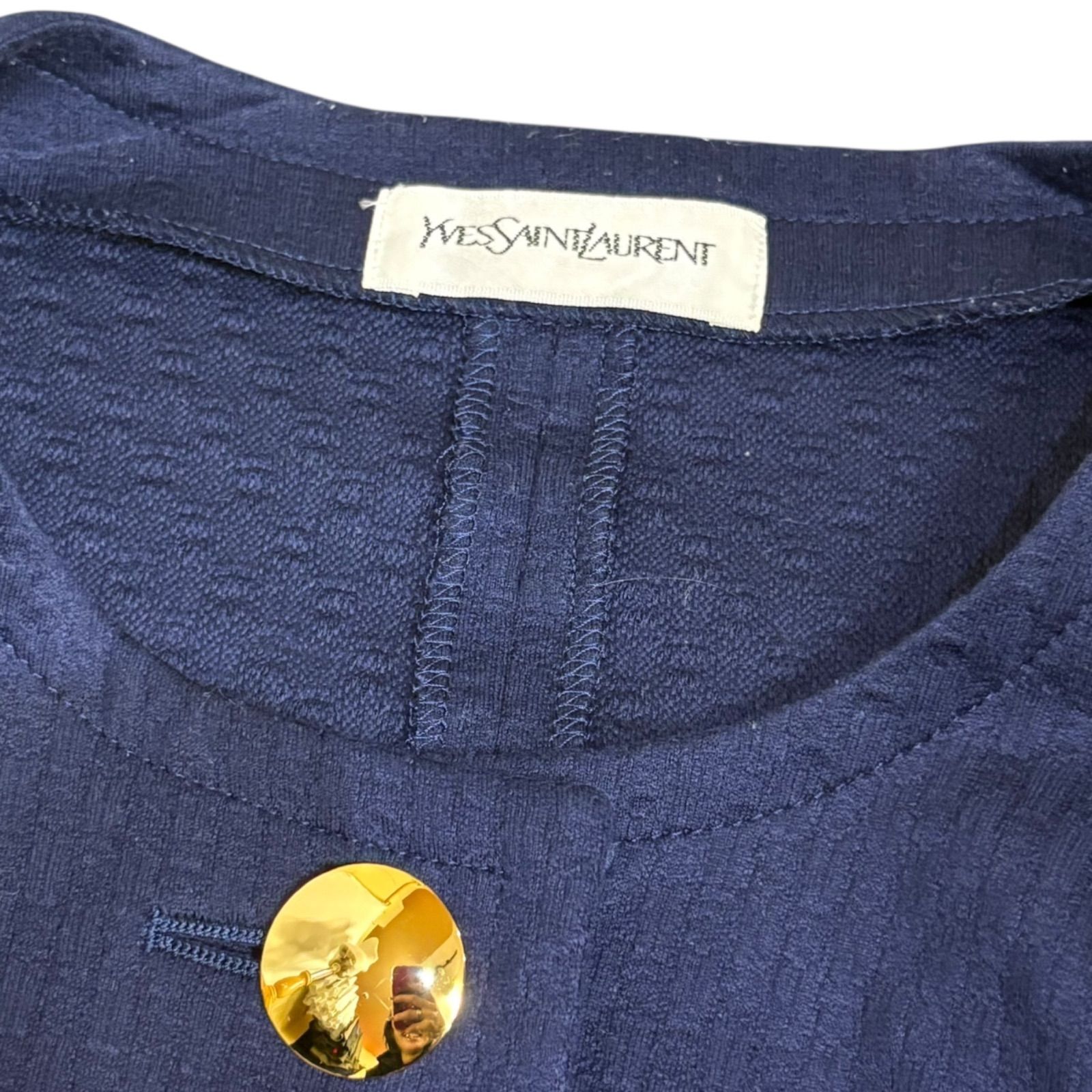 Yves Saint Laurent イヴサンローラン 半袖ジャケット ノー 金ボタン ネイビー ブラウス 無地 スカート セットアップ ヴィンテージ スーツ BLACKFEMALETHERAPIST_ORG