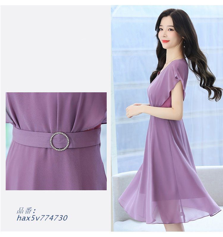Vネック フ ワンピース 全2色 半袖 シフォン 黒ワンピ 無地 シンプル ひざ丈 ミディアム丈 ウエストマーク 大人 Aライン hax5v774730 BLACKFEMALETHERAPIST_ORG