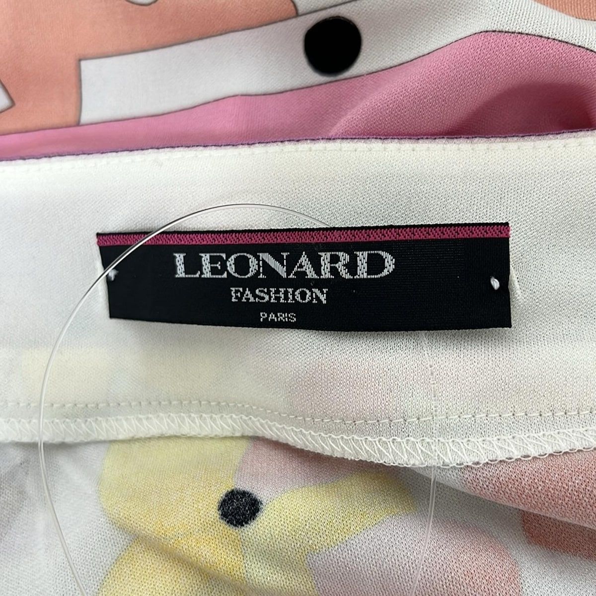LEONARD レオナール ワンピース サイズLL レディース - アイボリー×ピンク×マルチ 長袖 ひざ丈 カンカン素材 花柄 BLACKFEMALETHERAPIST_ORG