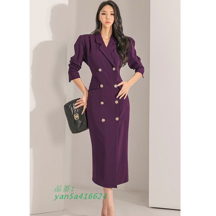 襟付きトレンチコート風 2連前ボタンミモレ丈長袖ワンピース 紫 韓国 レディース ファッション きれいめ yan5a416624の検索結果
