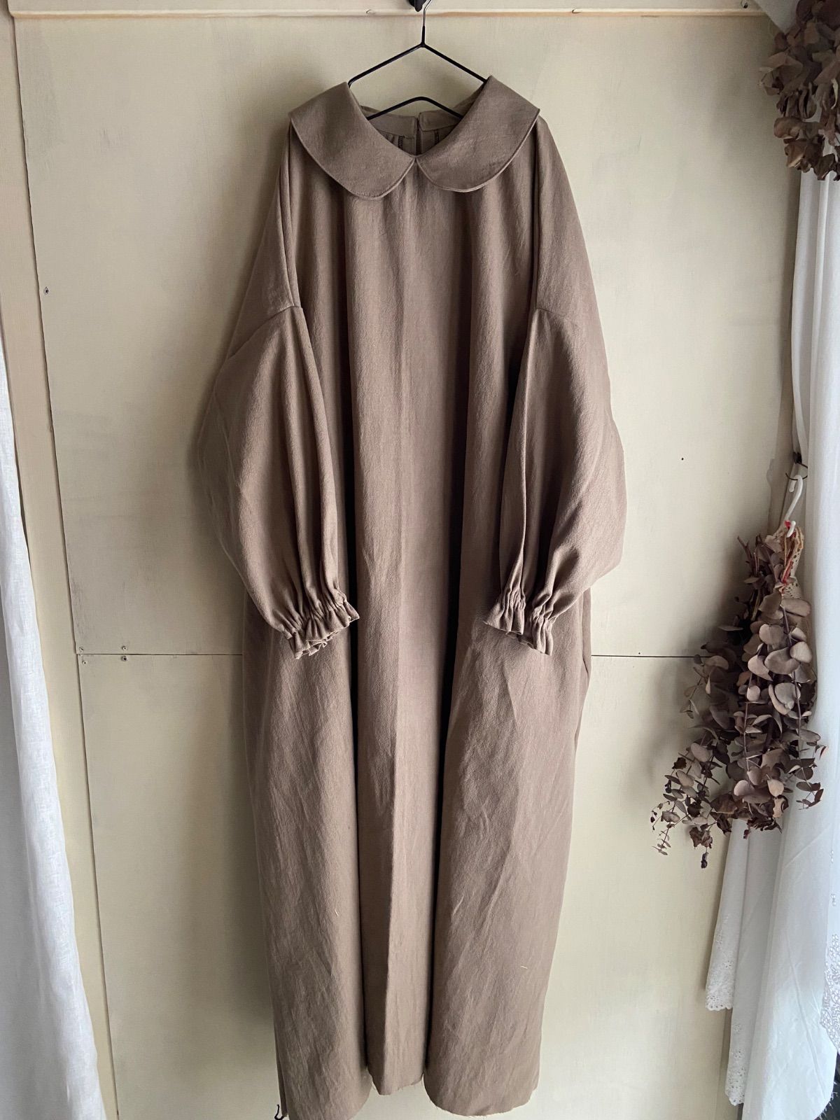 コットンリネン 綿麻 丸襟 Aラインワンピース ブラウン aラインワンピースの検索結果