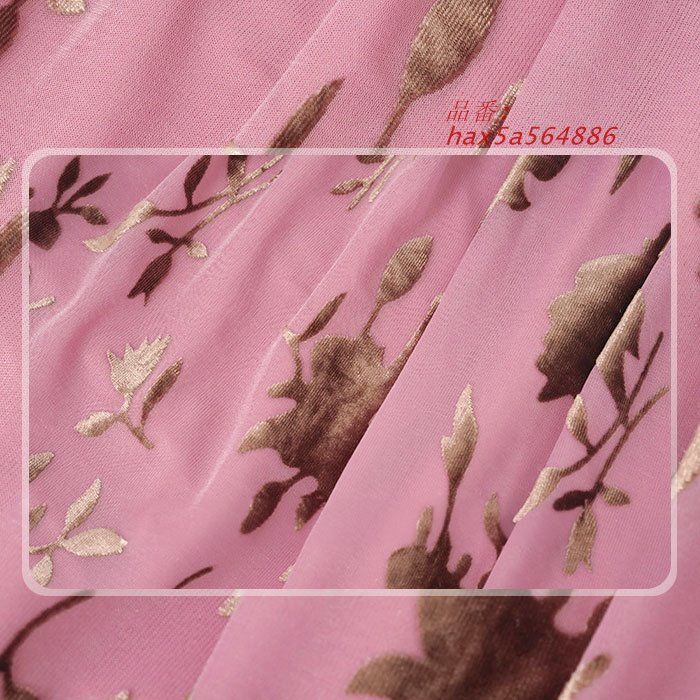シースルー花柄長袖 深スリットベロア ロングタイトドレスワンピース 紫 yan5a526316