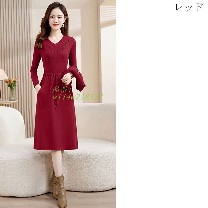 カーディガン風ケープ付き 膝丈長袖ニットワンピース 赤 カーキ 茶 カジュアル デート 韓国 レディース 服装 vii4w218523の検索結果