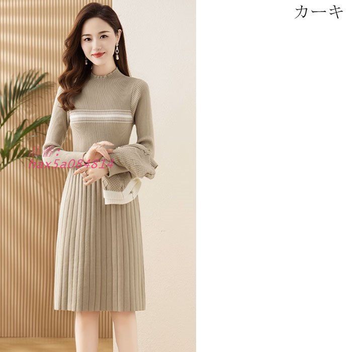 ニットワンピース レディース ロング ワンピース 秋冬 長袖セーター ゆったり タイト通勤 柔らか 体型カバー 上品 kni4a942638