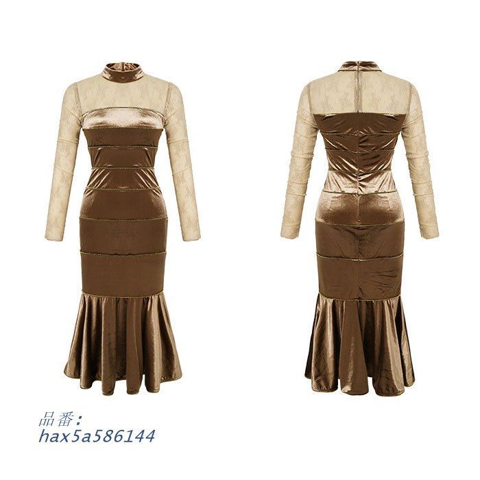 シースルーレース長袖 ミモレ丈タイトベルベットドレスワンピース 黒 ベージュ 結婚式 お呼ばれ パーティー 韓国 ドレス hax5a586144の検索結果