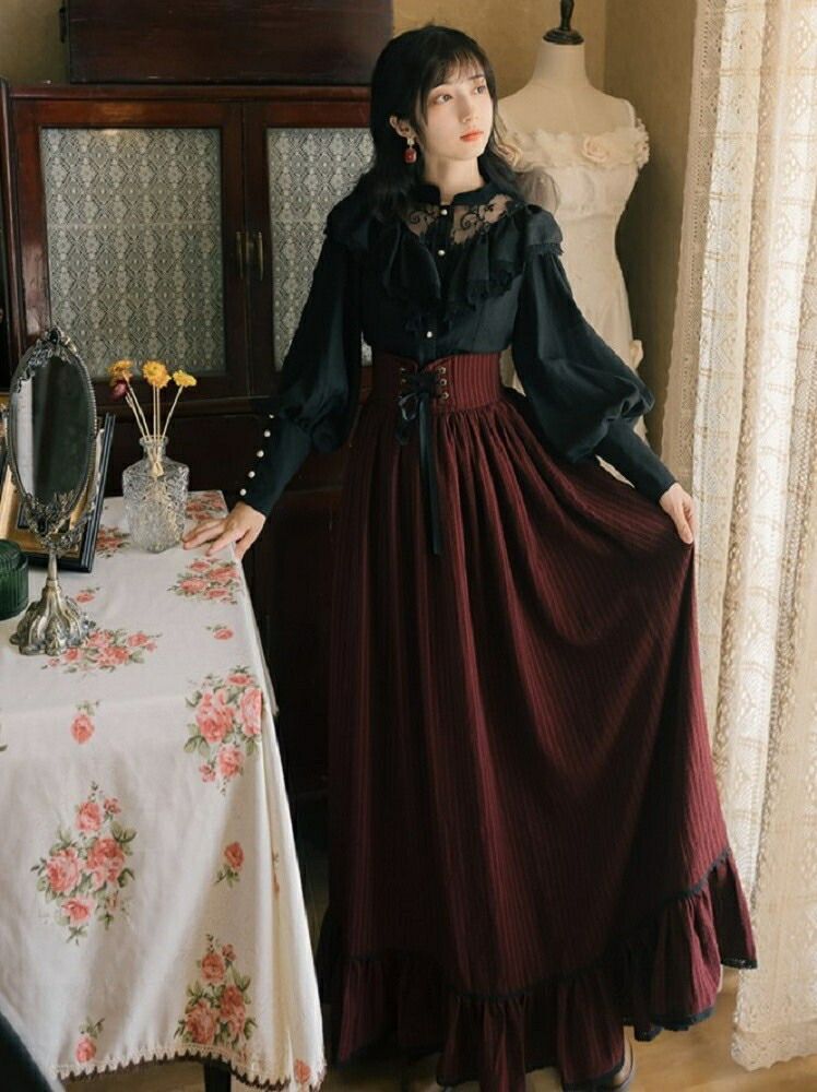 ドレス ボルドー ロングスカート ブラックレーストップス 上下セット ゴシックの検索結果