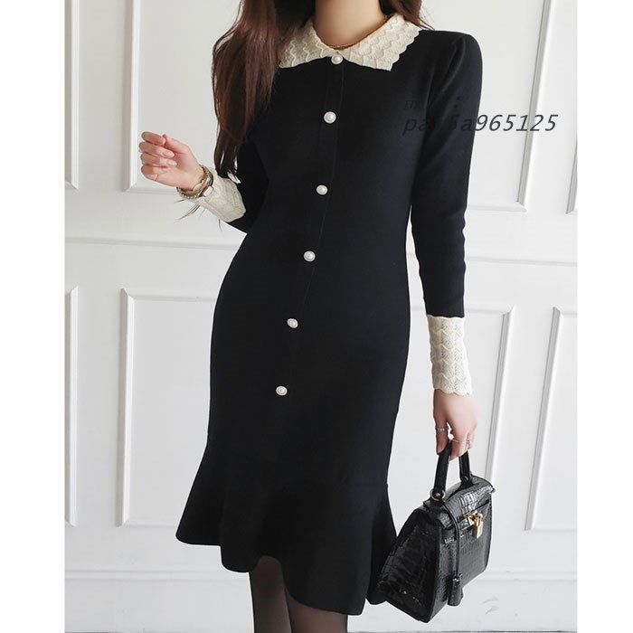 襟付き前ボタン 膝丈マーメイドタイトニットワンピース 黒 カジュアル レディース 韓国 pai5a965125の検索結果