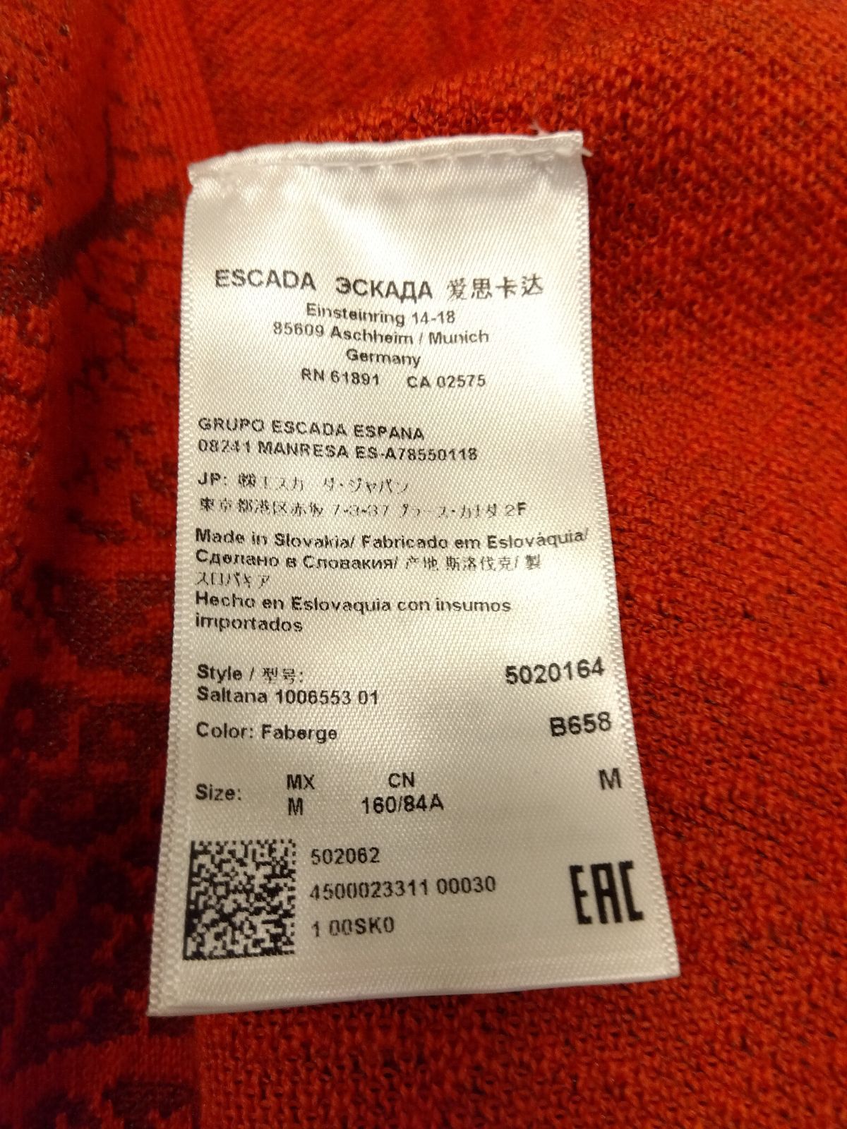 M7 エスカーダスポーツ ESCADA SPORT ワンピース サイズM ラムウール混 朱赤 柄 膝下丈フ 低身長 小柄な方向け BLACKFEMALETHERAPIST_ORG