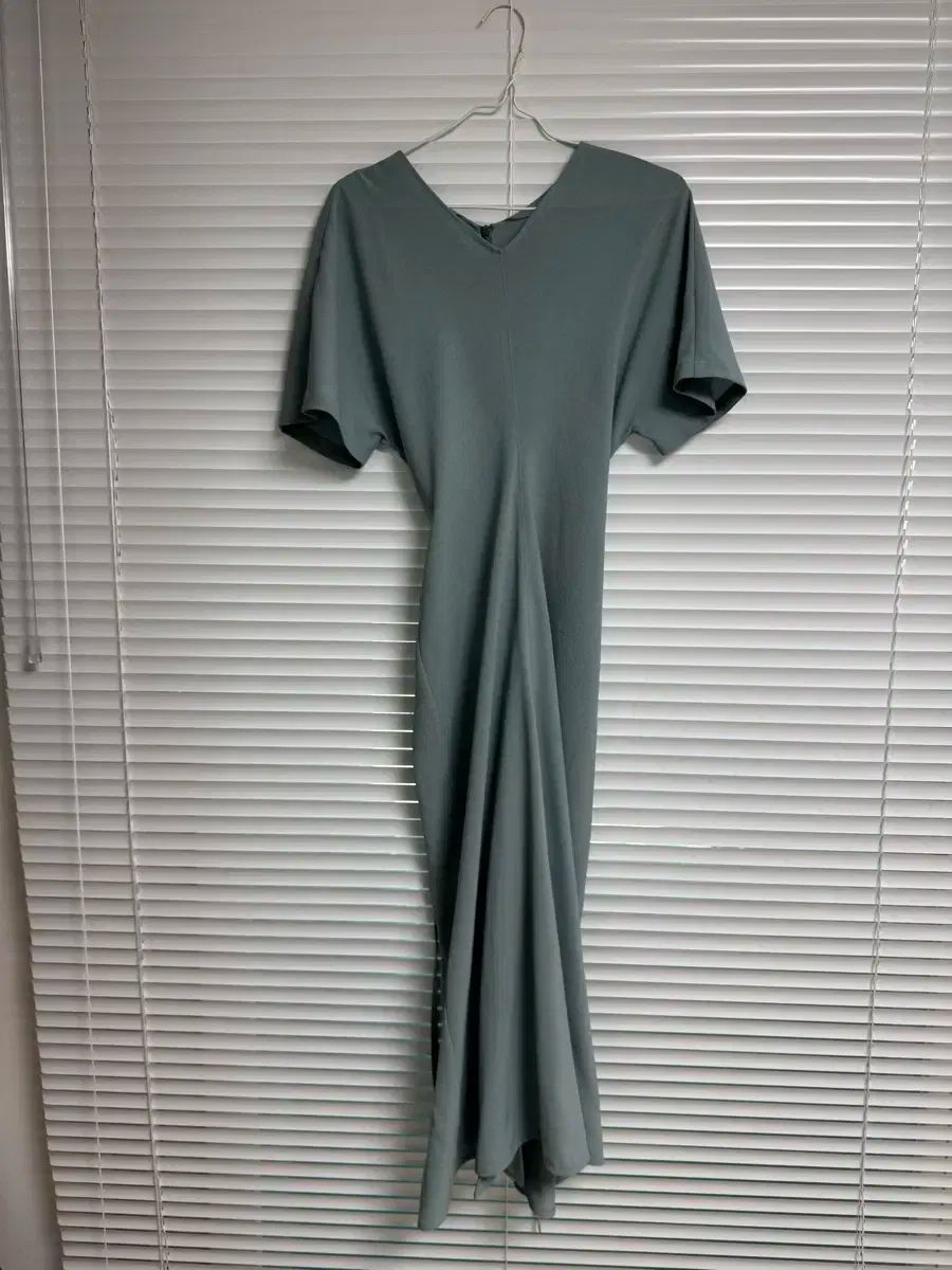シビラ SYBILLA ロングワンピース 襟付き スキッパー 七分袖 シーム 40 M グレー AO1 GY44