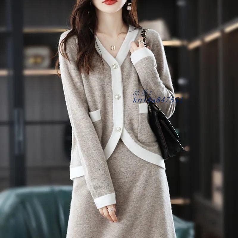 セットアップ レディース スカート 上下セット 膝丈 カーディガン 冬 体型カバー カジュアル ロング丈 秋 セーター Vネック 卒業式 kni4a847551 BLACKFEMALETHERAPIST_ORG