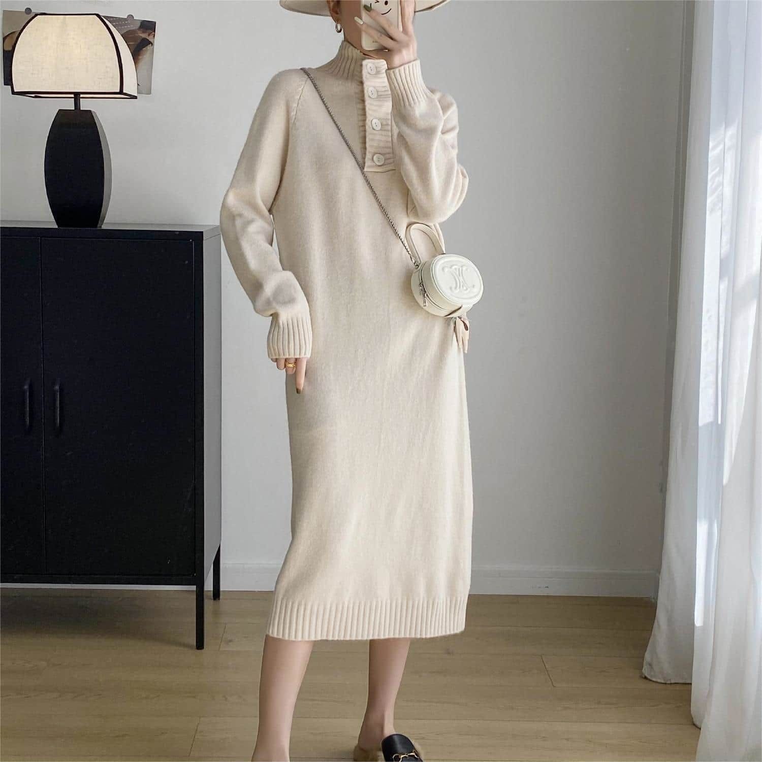 ロングニットワンピース 秋冬 即 OK ニットワンピース Aライン ハイネック ボタン 厚手 暖かい 保温 防寒服 ゆったり 体型カバー 長袖 上品 きれいめ シンプル 体型カバー 無地 伸縮性 洗える ルームgelitai13の検索結果