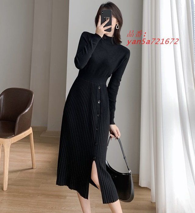 ニットワンピース ロングワンピース レディース ワンピース 長袖 きれいめ ワンピース ロング丈 ワンピース プリーツ 大きいサイズ レディース ドッキング yan5a721672 BLACKFEMALETHERAPIST_ORG