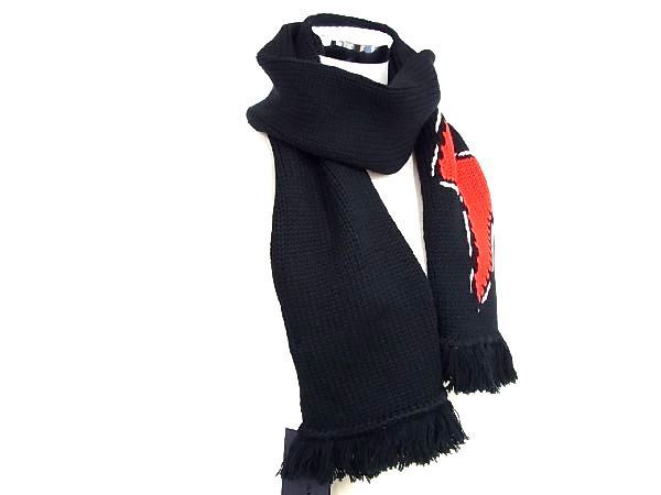 PRADA プラダ UMS342 ウール100% フリンジ マフラー メンズ レディース ブラック系×レッド系 AT3327 BLACKFEMALETHERAPIST_ORG