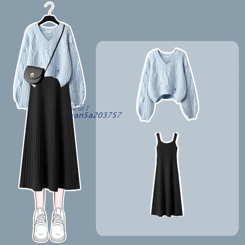 セットアップ レディース ワンピース 長袖 秋冬 ニット セーター 着痩せ 通勤 上下セット トップス Vネック ロングワンピース yan5a203757 BLACKFEMALETHERAPIST_ORG