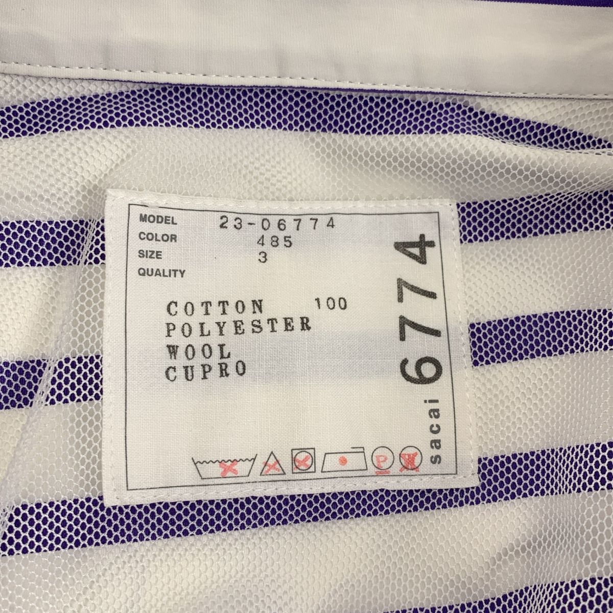 sacai サカイ Thomas Mason Cotton Poplin Dress ストライプ 切替 シャツ ワンピース 3 パープル ホワイト ネイビー レディース BLACKFEMALETHERAPIST_ORG