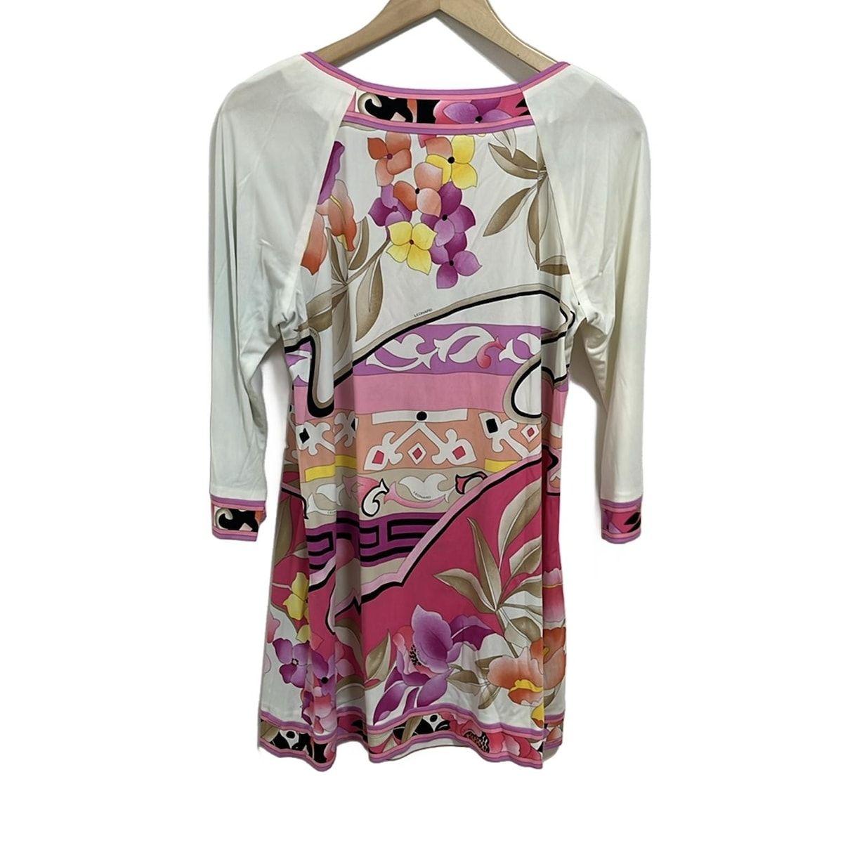 LEONARD レオナール ワンピース サイズLL レディース - アイボリー×ピンク×マルチ 長袖 ひざ丈 カンカン素材 花柄 BLACKFEMALETHERAPIST_ORG