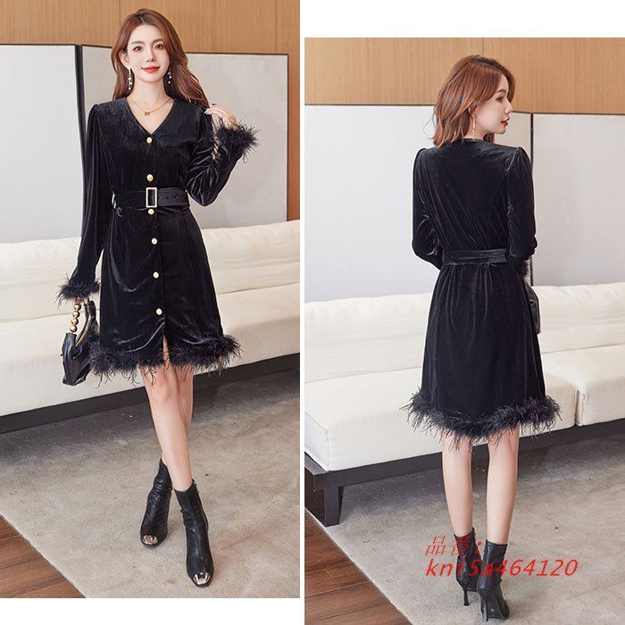 裾ファー使い ベロア仕立て前ボタン 長袖ショートワンピース 黒 キャバ スナック 服 ラウンジ 韓国 kni5a464120の検索結果