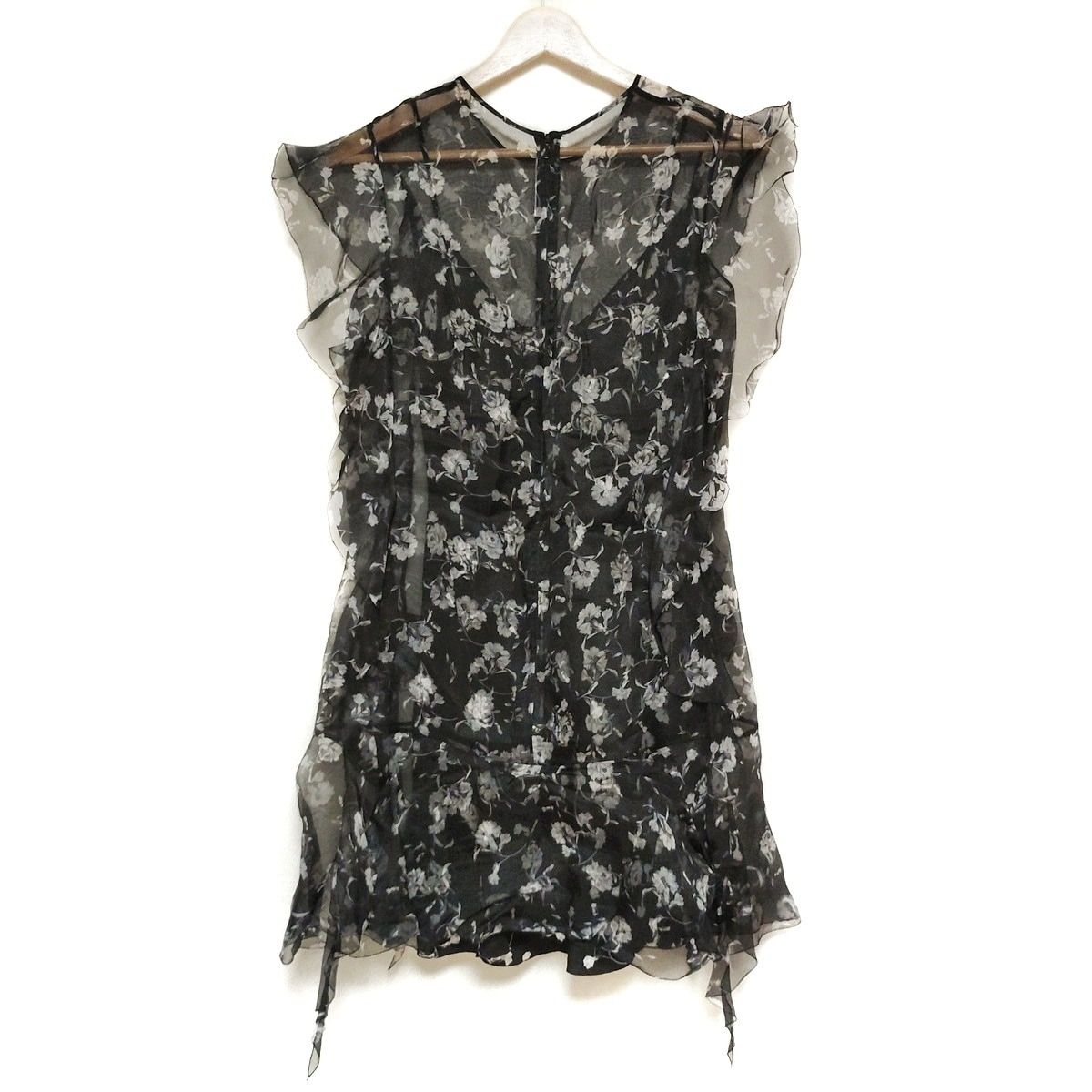 エルマノシェルビーノ ワンピース サイズ38 M レディース - 黒×グレー クルーネック ノースリーブ ロング シルク シースルー フリル 花柄 BLACKFEMALETHERAPIST_ORG