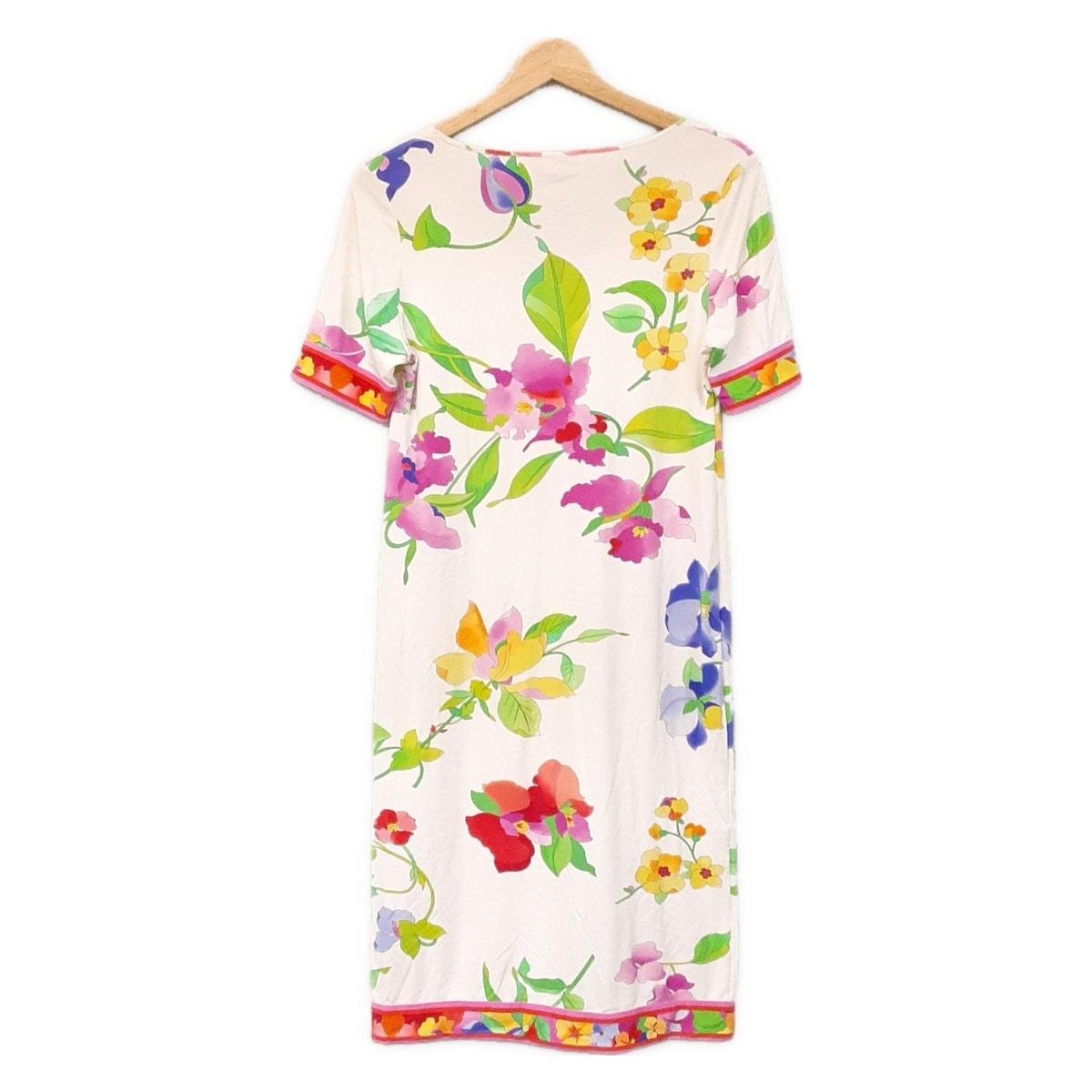 LEONARD レオナール ワンピース サイズ36 S レディース - 白×グリーン×マルチ クルーネック 半袖 ひざ丈 花柄 BLACKFEMALETHERAPIST_ORG