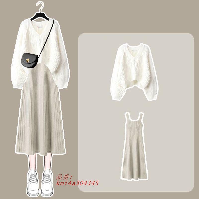 セットアップ レディース ワンピース 長袖 秋冬 ニット ロングワンピース Vネック 着痩せ セーター トップス 上下セット 通勤 kni4a304345の検索結果