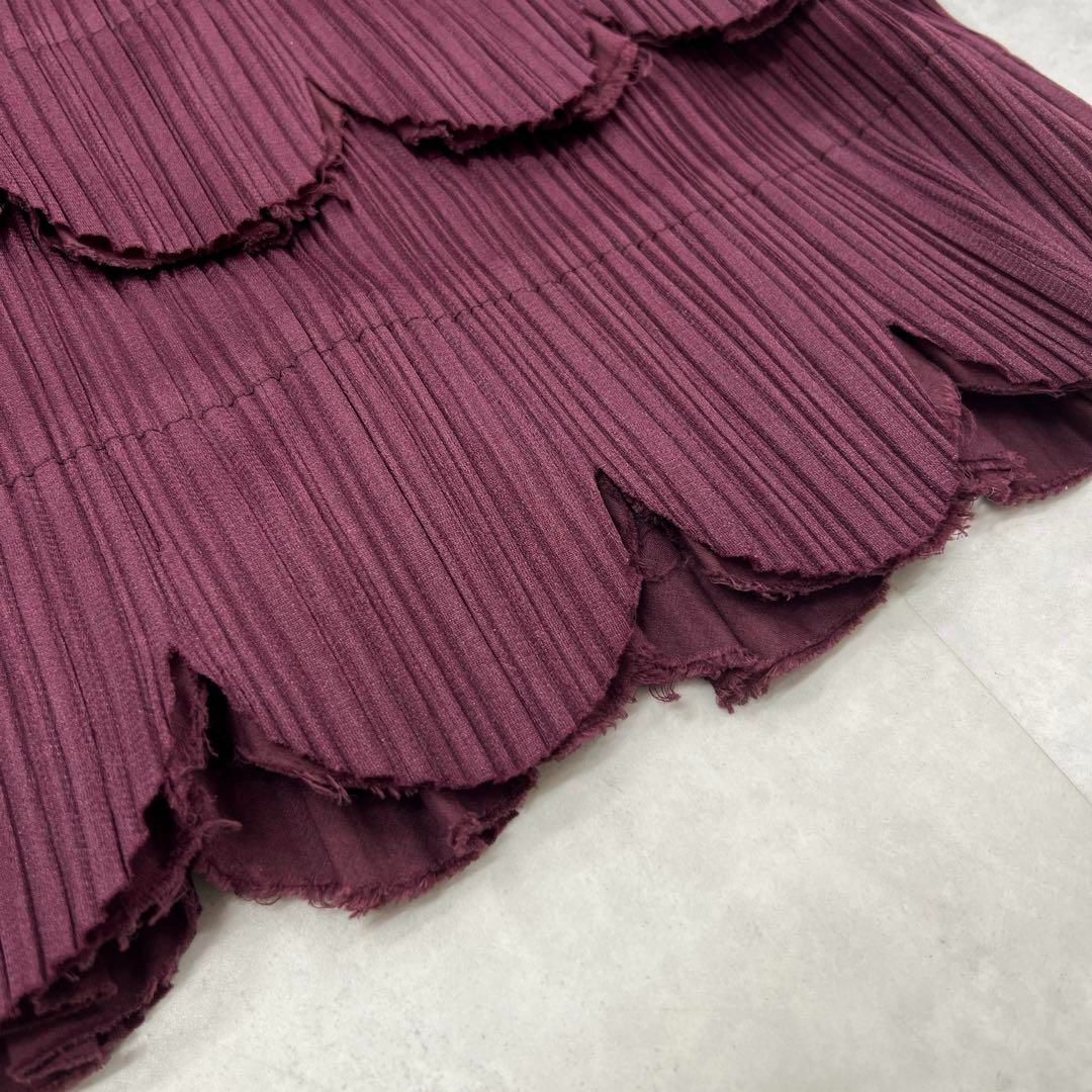 PLEATS PLEASE ISSEY MIYAKE プリーツプリーズ イッセイミヤケ ワンピース スカラップ レース 裾フリル ボルドー ワインレッドの検索結果