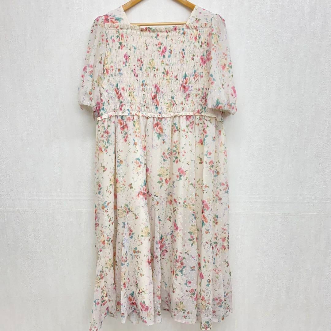 エスカダ レディース ワンピース ドレス 半袖 ハートチャーム M〜L 花柄