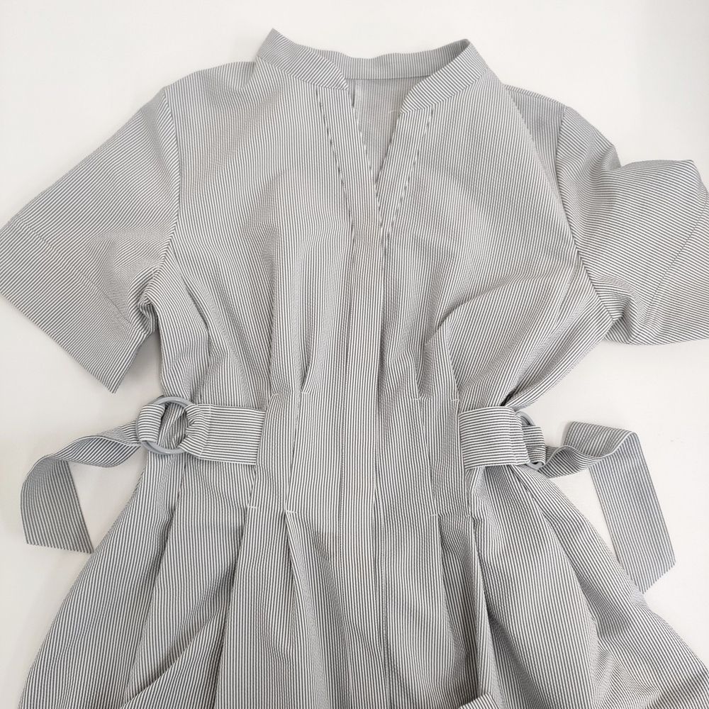 ANAYI サッカーストレッチサイドベルトワンピース 定52800円 36 ストライプ スキッパー 25SS グレー ホワイト レディース アナイ 5-1001S BLACKFEMALETHERAPIST_ORG