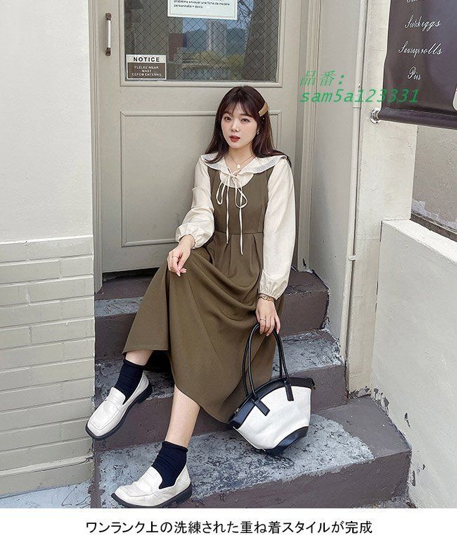 大きめ襟付き前ボタン 膝下ミモレ丈 長袖スーツ風ワンピース パーrヒー スーツ スーツワンピース 服 韓国 お水 vii4w996789