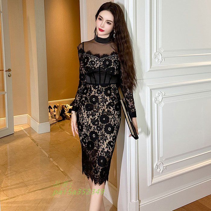 シースルーレース刺繍 ハイウエスト長袖膝丈タイトドレスワンピース 黒 結婚式 お呼ばれ キャバ 服 スナック ドレス 韓国 pai5a352349の検索結果