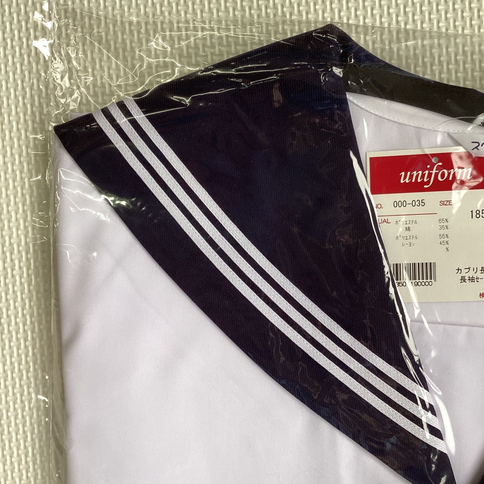 場面を選ばない本物のセーラー服 中間服 白シャツ生地 脇開 長袖 通学用 制服 礼服 結婚式 葬儀 遊び着 私服校の日常通学用に
