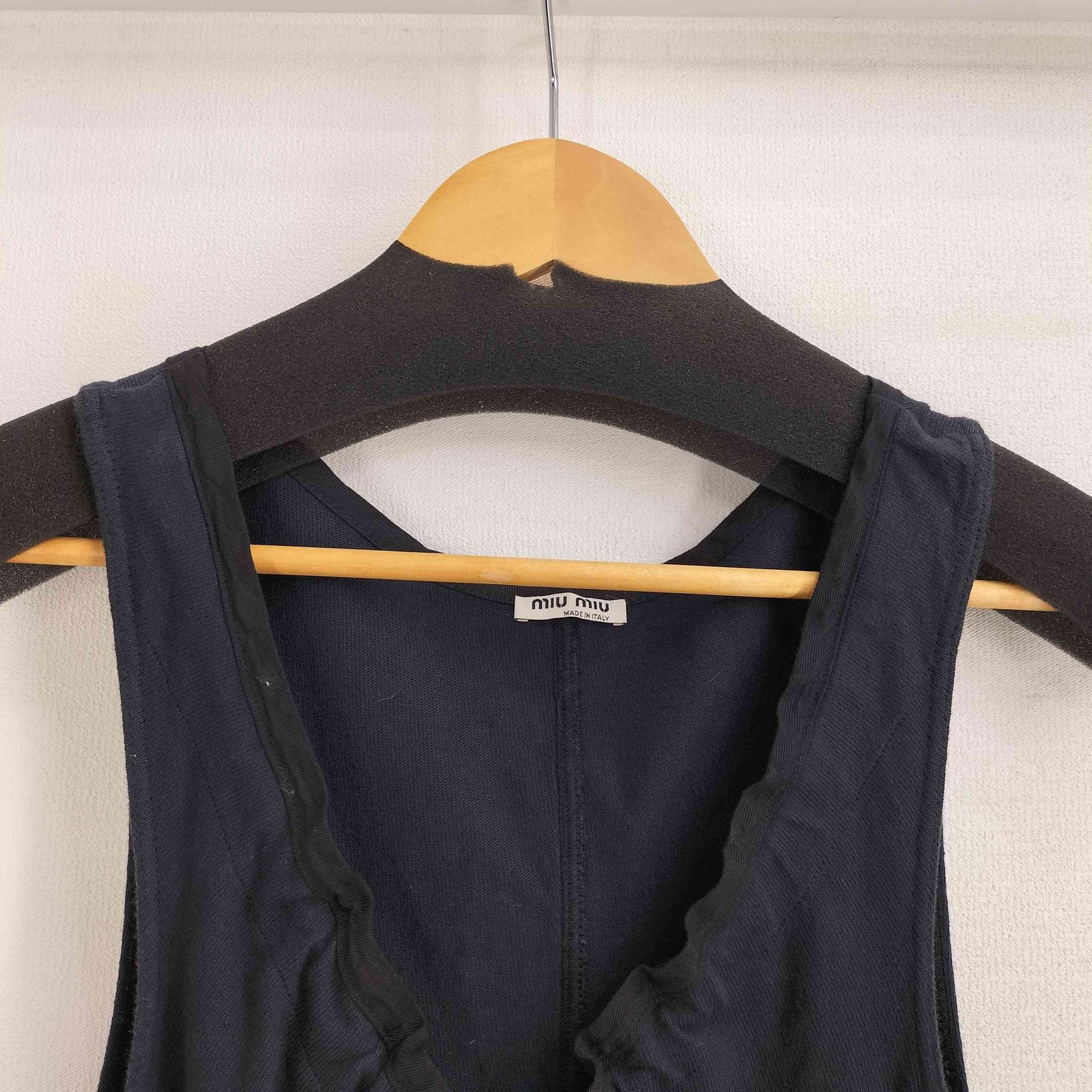 ミュウミュウ miu miu イタリア製 フリルデザイン サイドジップ コットン ノースリーブワンピース レディース M BLACKFEMALETHERAPIST_ORG