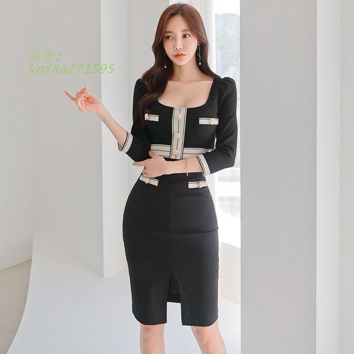 大胆胸開き 前ボタンショートタイト七分袖ワンピース 黒 キャバ スナック ラウンジ ナイトドレス セクシー 韓国 kni4a271595の検索結果
