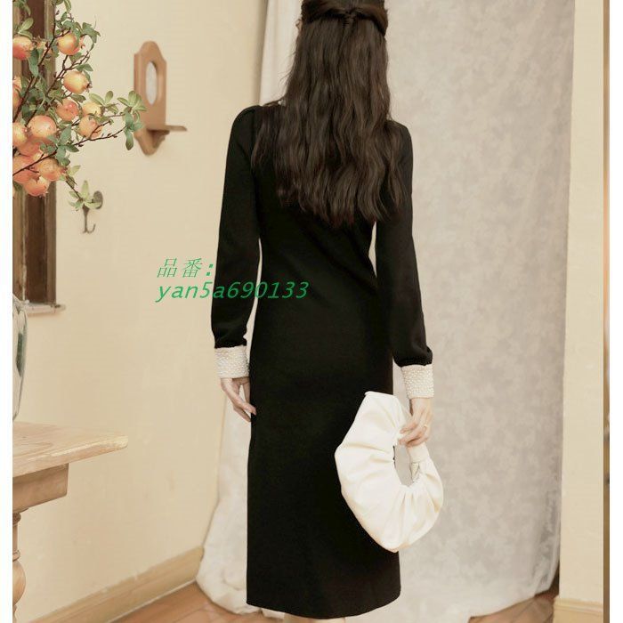 長袖トップニット ロングスカートワンピース 黒 カジュアル 大人 上品 韓国 レディース 服 デート yan5a478611