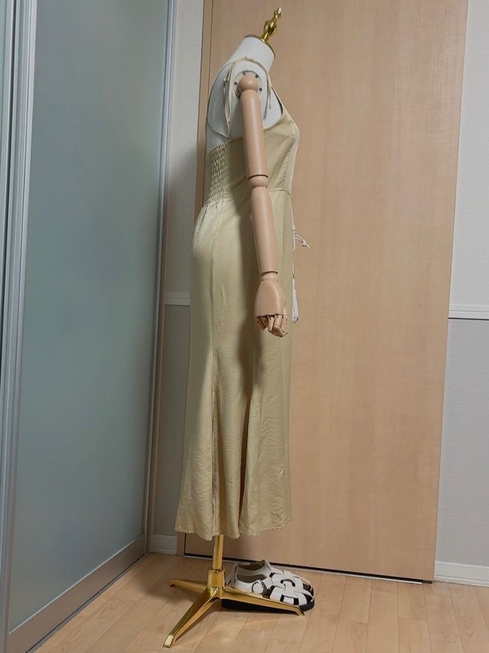 Maison Margiela 21AW ウール サテン切替キャミソールワンピース ミモレ丈 スリッ ト 38