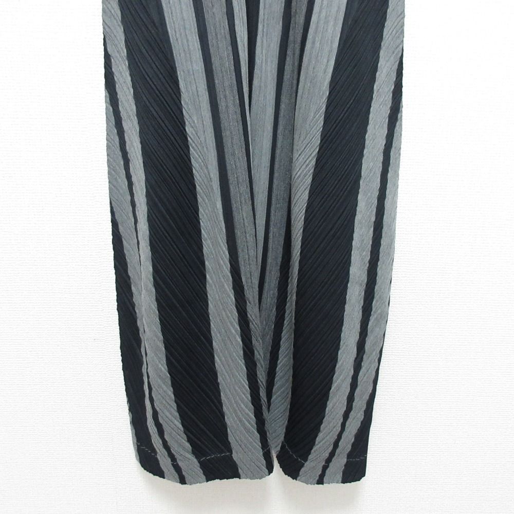 PLEATS PLEASE プリーツプリーズ イッセイミヤケ ストライプ ノースリーブ ワンピース PP51-JH513 サイズ3 グレー レディース 古着 BLACKFEMALETHERAPIST_ORG