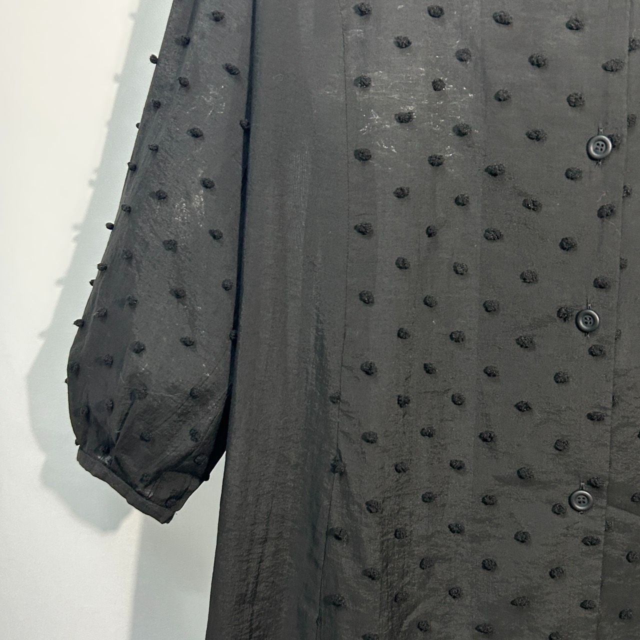 POINTLIGNE 38 ブラック ロングシャツワンピース ドット シースルー 羽織り 長袖シアー レディース ドロップショルダー ポワンリーニュ BLACKFEMALETHERAPIST_ORG