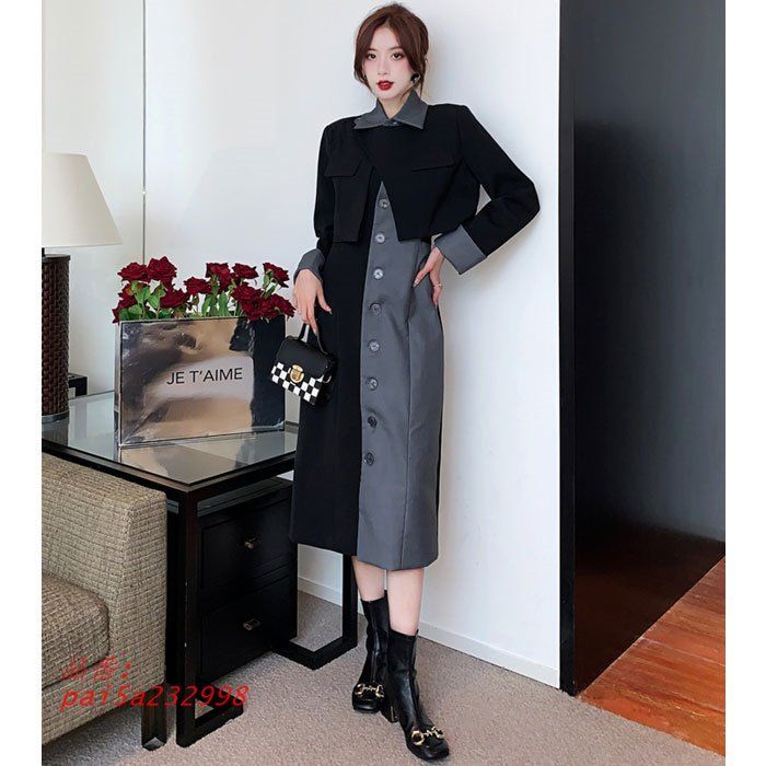 長袖ショートジャケット ロングタイトワンピース セットアップアンサンブル 黒 グレー おしゃれ カジュアル レディース 韓国 服 pai5a232998の検索結果