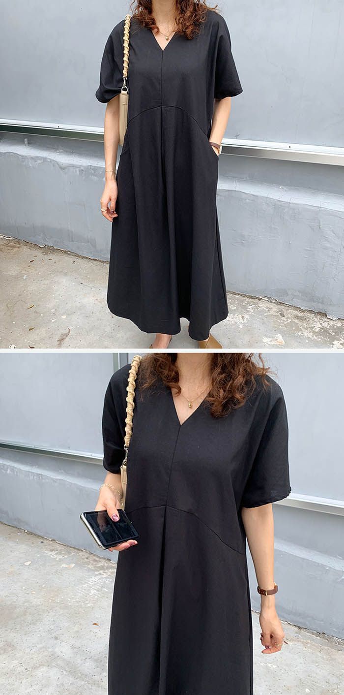 ワンピース 半袖 夏 vネック ロングワンピース 綿麻 無地 レディース ワンピ ミモレ丈 きれいめ ゆったり 体型カバー カジュアル ナチュラル シンプル おしゃれ 着痩せ 大人 moli01 BLACKFEMALETHERAPIST_ORG