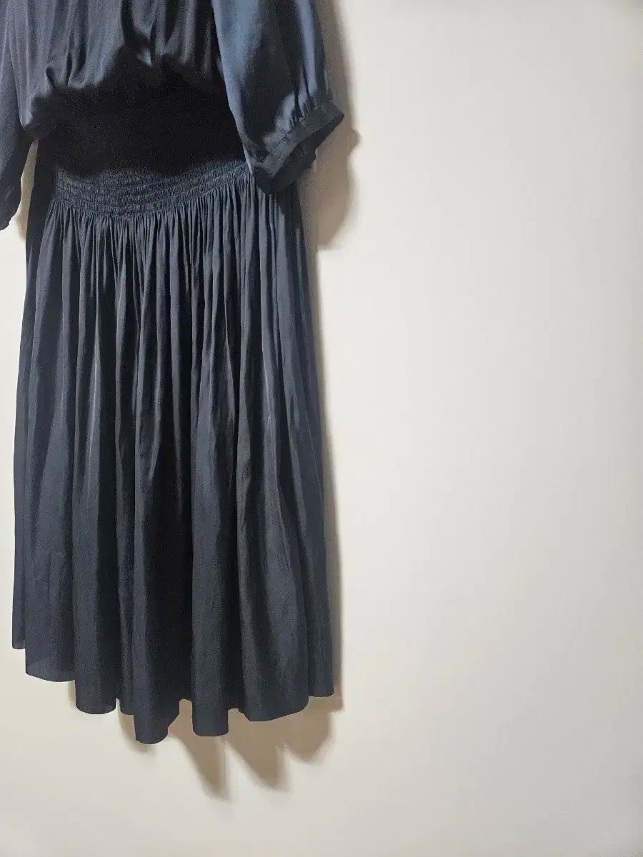 サヤカデイヴィス SAYAKA DAVIS オーガニックコットンワンピース ロング 裾プリーツ 5分袖 小さいサイズ XS 黒 ブラック X