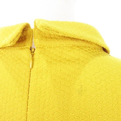 バーバリーブルーレーベル BURBERRY BLUE LABEL ワンピース ミニ 半袖 ラウンド マーメイドシルエット ハニカム生地 38 M 黄 マスタード AH22 GY18 BLACKFEMALETHERAPIST_ORG