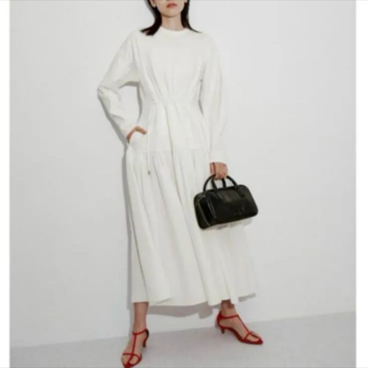 55 イチ ichi ドット 水玉 ワンピース シャツ ロング 長袖 黒 白 お呼ばれ デート オフィスカジュアル 食事会