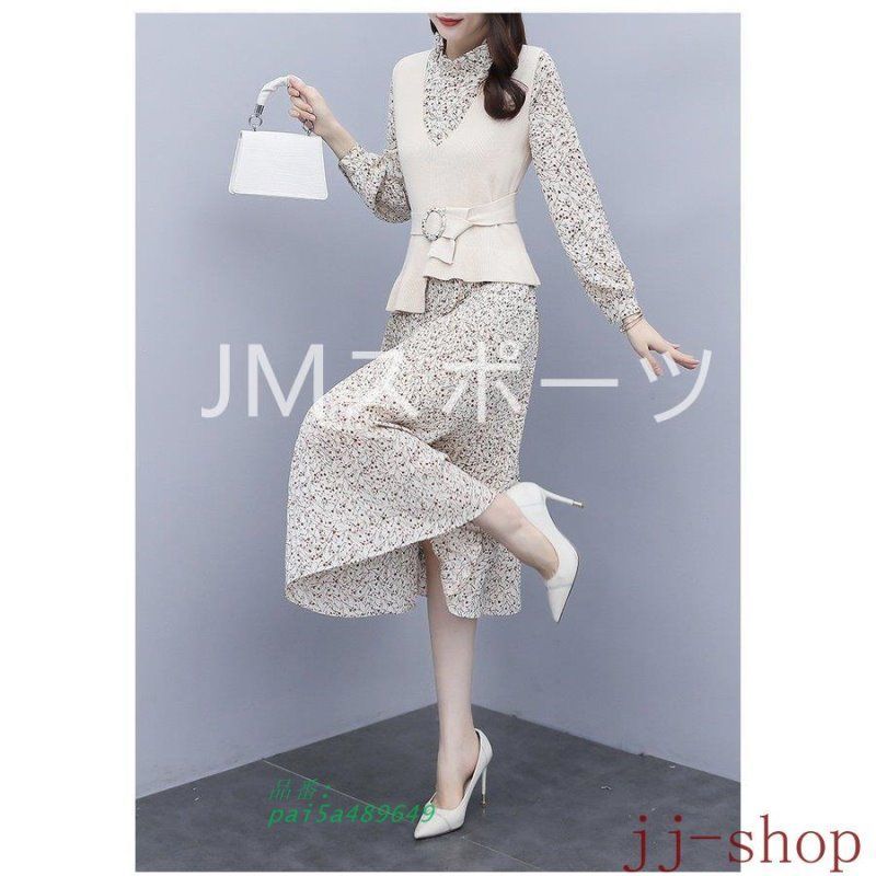 ワンピース2点セット レディース 40代 キレイめ マキシワンピース 秋冬 大人 着痩せ 上品 オシャレ ニットベストセットアップ 長袖ワンピース花柄スカート pai5a489649 BLACKFEMALETHERAPIST_ORG