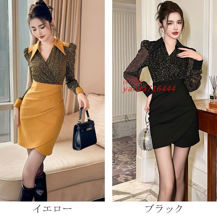 襟付きカシュクールVネック 長袖ハイウエストタイトミニワンピース 黒 黄 緑 オレンジ ドレス 韓国 タイトミニ レディース セクシー yan5a716444の検索結果