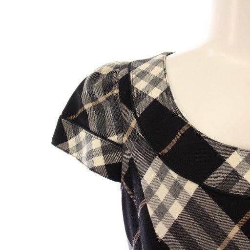 バーバリーブルーレーベル BURBERRY BLUE LABEL フ ワンピース ひざ丈 半袖 Uネック ウール ベルト チェック柄 38 黒 ブラック グレー BB BLACKFEMALETHERAPIST_ORG